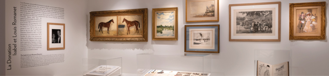 À la fin des années 1960, Isabel et Louis Romanet entreprennent de constituer une remarquable collection consacrée à la vie aux courses et à la mémoire de Deauville. Au fil des années, cet ensemble s'enrichit jusqu'à réunir plus de 3000 pièces : près de 400 peintures et dessins, 450 ouvrages précieux - livres anciens et albums - ainsi que plus de 2000 documents iconographiques, cartes postales et affiches.